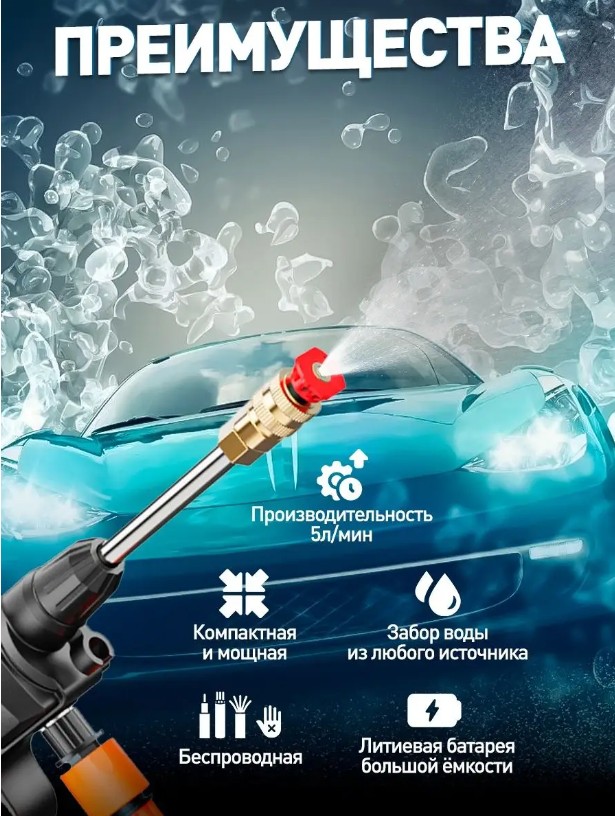 Работает от аккумулятора и не требует использования большого количества воды. Это экологически чистый и экономичный способ сохранить автомобиль в идеальной чистоте..